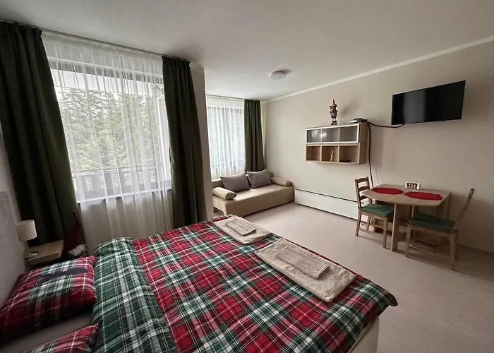 Apartmentul Borovets Gardens Funky Fresh Studio By Joro Apartment cu 1 dormitoare este situat în Boroveț, la 700 de metri distanță de Boroveț, și oferă facilități de spa, cum ar fi o saună. Acest apartament de 36 m^2 oferă facilități moderne, cum ar fi WiFi, și servicii esențiale, precum parcare privată gratuită pentru cei care călătoresc cu mașina.